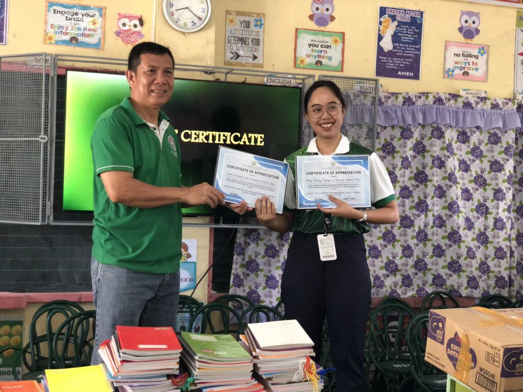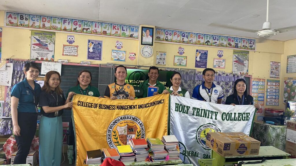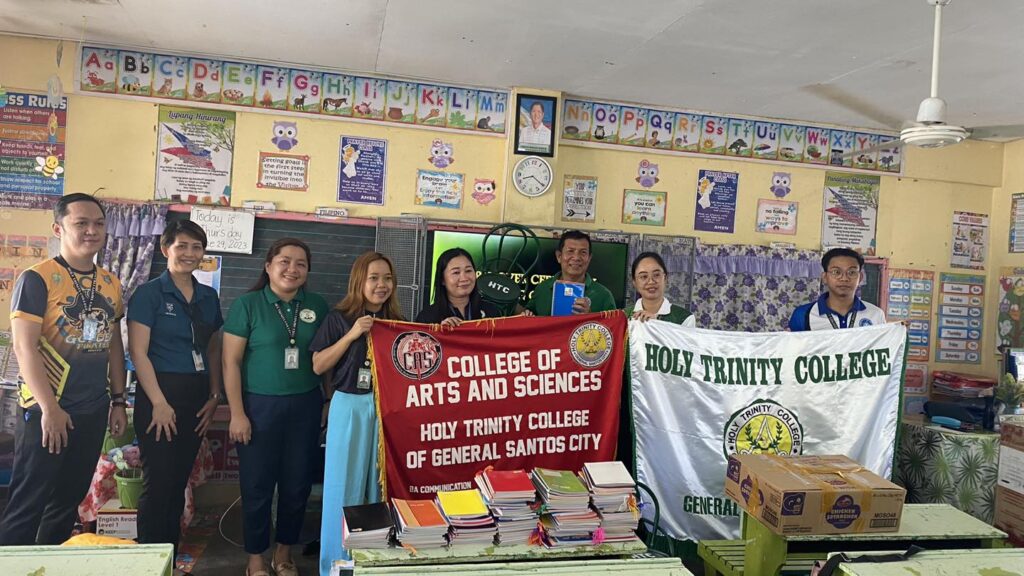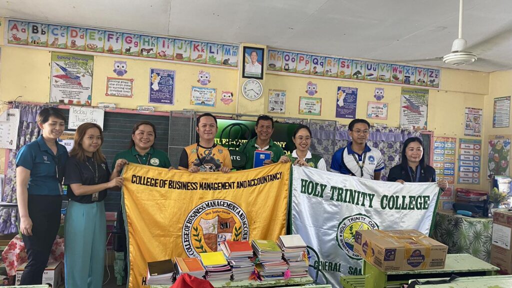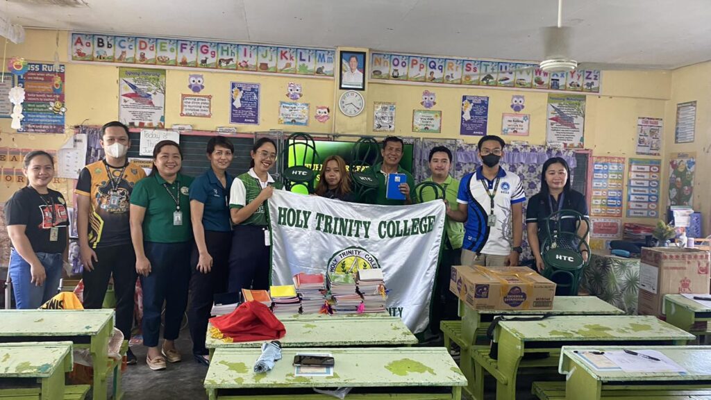 The College of Business Management and Accountancy joins Holy Trinity College of General Santos City’s Social Orientation and Community Involvement (SOCI) Office’s donation drive activity at New Guadalupe Elementary School. HTC has donated rattan chairs and notebooks for the grade school learners of the said school. The drive is headed by HTC SOCI Coordinator Ms. Gwenn Juanatas also participated in the Graduate School, CCJE, CAS, CTE, CETE, JHS, and SHS.