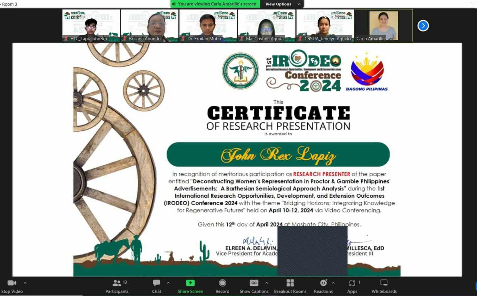 John Rex M. Lapiz successfully represented the institution in this global event which showcased HTC’s commitment to academic excellence and research-driven learning. John Rex, alongside his co-authors Eve May Marqueda and Dr. Haya Jane Estigoy-Elan, presented the compelling study: “Deconstructing Women’s Representation in Procter & Gamble Philippines’ Advertisements: A Barthesian Semiological Approach Analysis.”