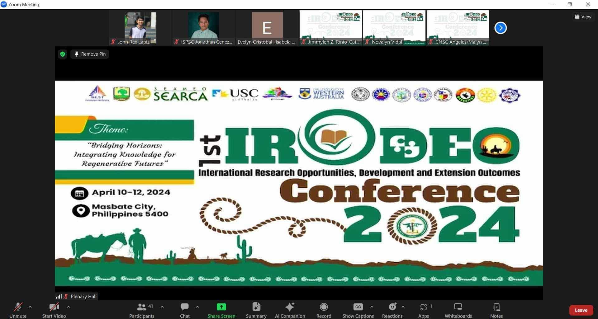 First International Research Opportunities, Development and ExtensionOutcomes (1st IRODEO) Conference