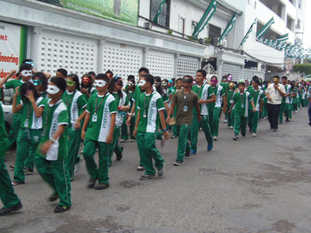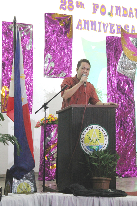 On November 17, 2012, the celebration continued with a parade which started at 8:00 o’clock in the morning. Trinitarians from different level of education actively participated in the said event. A friendly basketball game followed afterwards where teachers from the basic education department battled against the teachers from the college department including the non-teaching staff. Students got a glimpse on how their teachers and the staff play, which was a deviation from their usual tasks. In both men and women categories, the teachers from the basic education emerged as the winners and defended their title which they held for several years.